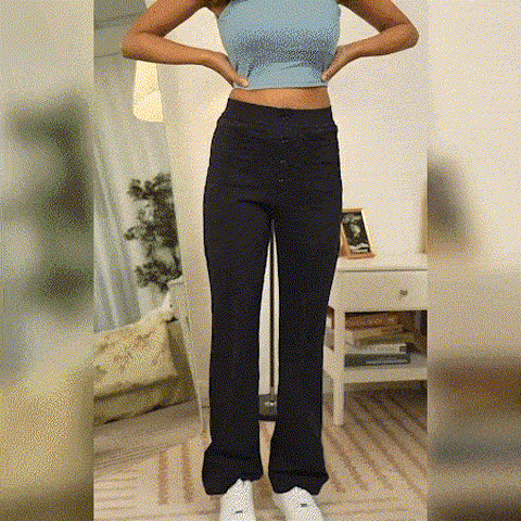 Pants feature an elastic waistband and faux button design, letting you slip into style in just seconds—a hassle-free upgrade from traditional buttons and drawstrings.